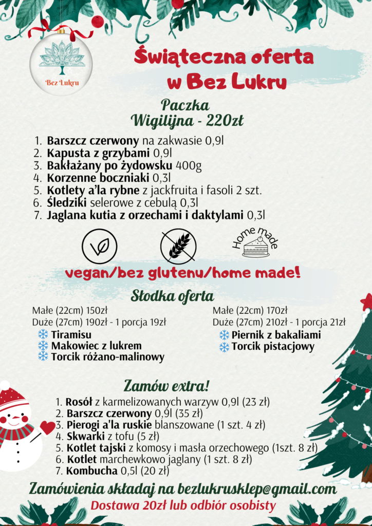Niemal wszystko przygotowujemy sami.Stawiamy na przepisy sezonowe i lokalnych dostawców.Słodyczy szukamy jedynie w: cukrze brzozowym i kokosowym oraz owocach.
